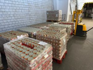 Der Verein kaufte 13 Paletten (7056 Dosen) Lebensmittel für 10342,73€. Fa. Müller spendete uns eine Palette Salz, eine Palette Zucker und zwei Paletten Mehl im Wert von über 3.000€, herzlichen Dank dafür. | ||||