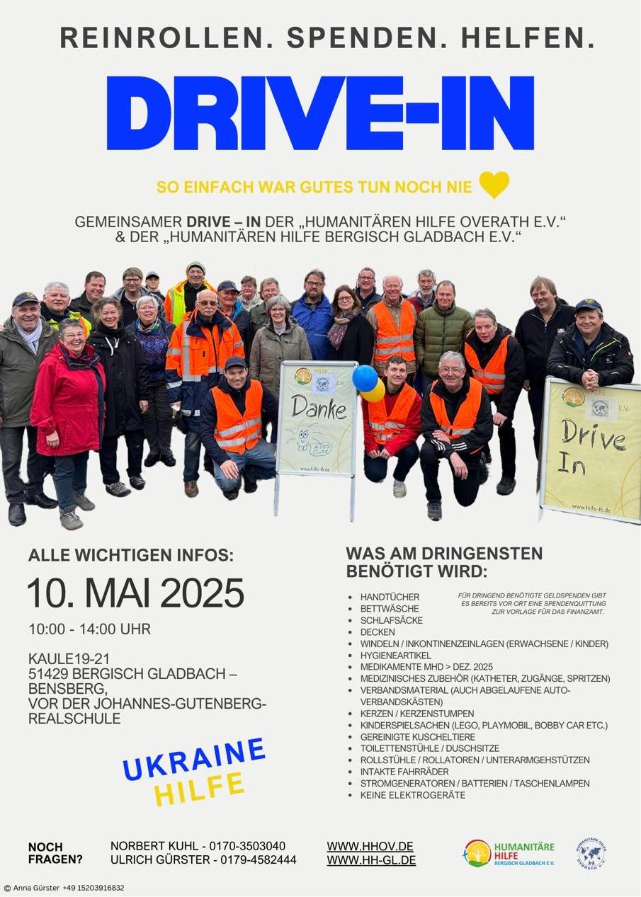 für den nächsten Hilfstransport in die Ukraine. Wir wiederholen den Drive-In der vergangenen Jahre und hoffen wie in den Vorjahren auf zahlreiche Sachspenden.