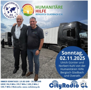 City Radio GL sendet am 2. November 2025 einen Beitrag zur Arbeit der Humanitären Hilfe Overath und Bergisch Gladbach.